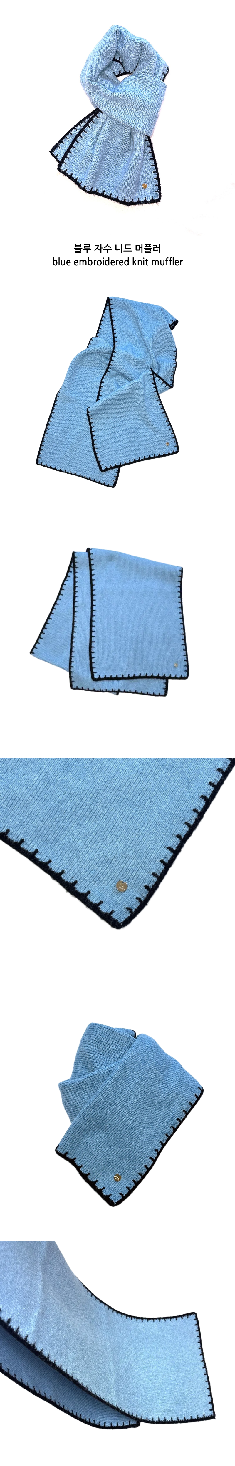 블루 자수 니트 머플러 blue embroidered knit muffler