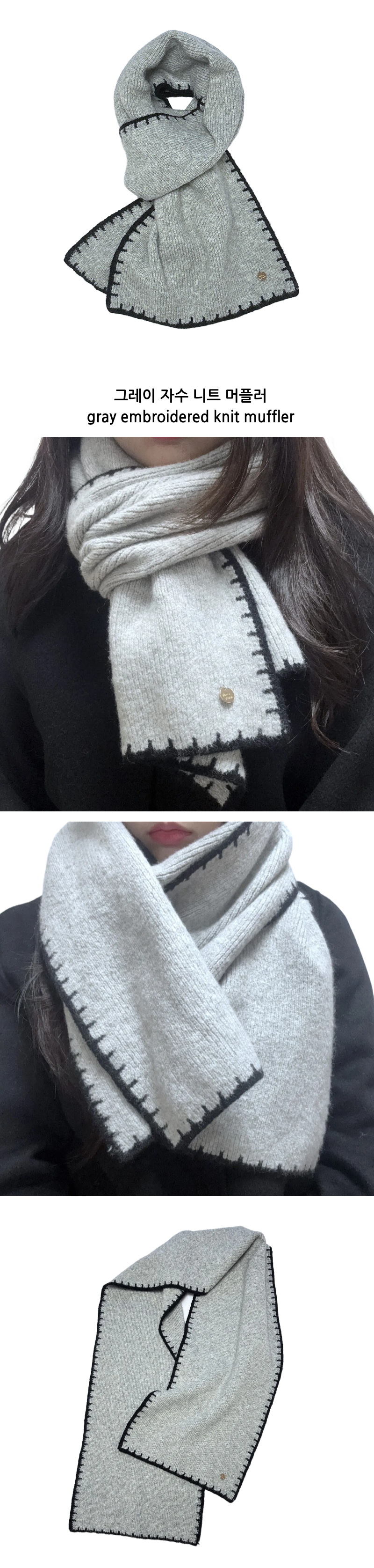 그레이 자수 니트 머플러 gray embroidered knit muffler
